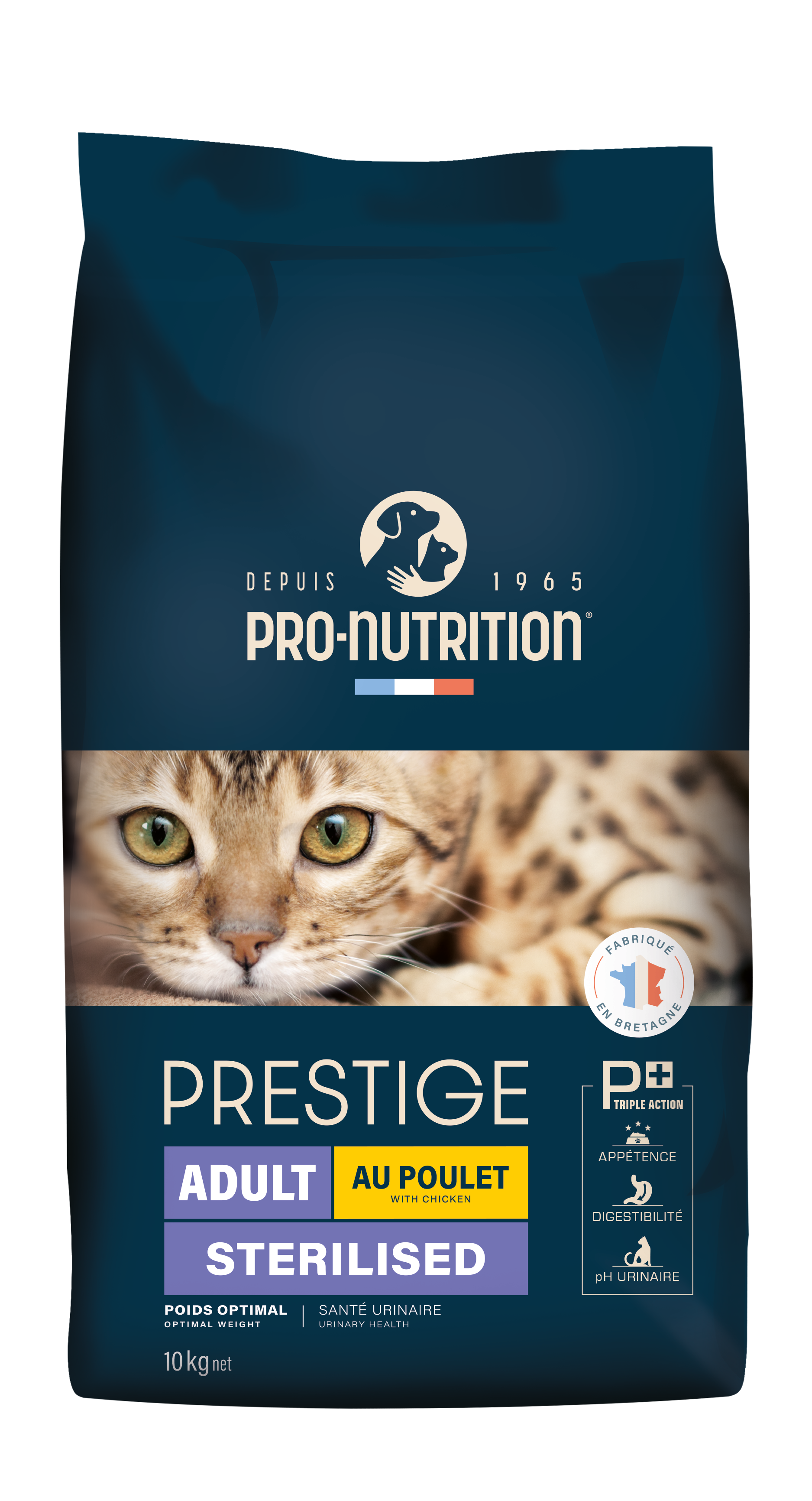 Les croquettes Prestige Chat Stérilisé Poulet – Adult Sterilised sont une alimentation complète et équilibrée, spécialement formulée pour répondre aux besoins des chats adultes stérilisés. Grâce à une recette riche en protéines animales de qualité et modérée en matières grasses, elles contribuent au maintien du poids de forme, tout en soutenant la digestion et la santé urinaire.