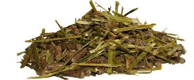 Aliment granulé à base de flocons et fibres longues pour chevaux au travail.