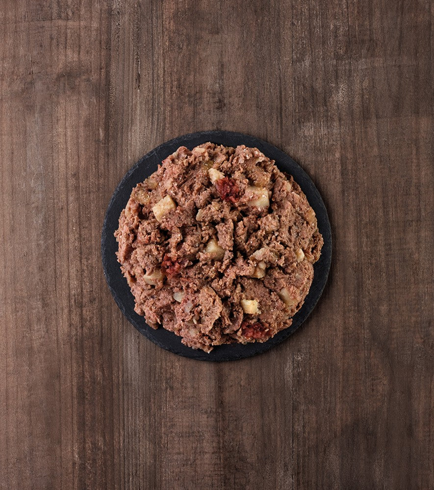 La texture humide de cette pâtée la rend particulièrement appétente, idéale comme repas complet ou en complément savoureux des croquettes. Elle convient parfaitement aux chiens sensibles, difficiles ou nécessitant une alimentation plus douce et hydratante au quotidien.